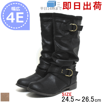大きいサイズ ブーツ くしゅくしゅロング エンジニアブーツ 大きいサイズ 25.5cm 26cm 26.5cm 対応 幅広 甲高 外反母趾 ワイズ 4e レディース 4 e ふくらはぎ ゆったり ブーツ 大きい 筒周り 太め 筒周り 25cm 婦人靴 履き口 ワイド 靴レディース モデルサイズ 08413TW