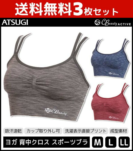 送料無料3枚セット CBeauty ACTIVE クリアビューティーアクティブ YOGA ヨガ 背中クロス 杢成型ブラジャー スポブラ アツギ ATSUGI ハーフトップ|下着 ブラ ブラジャー ブラトップ ヨガウェア レディース ハーフトップブラ ホックなし ヨガブラ フィットネスブラ ジム